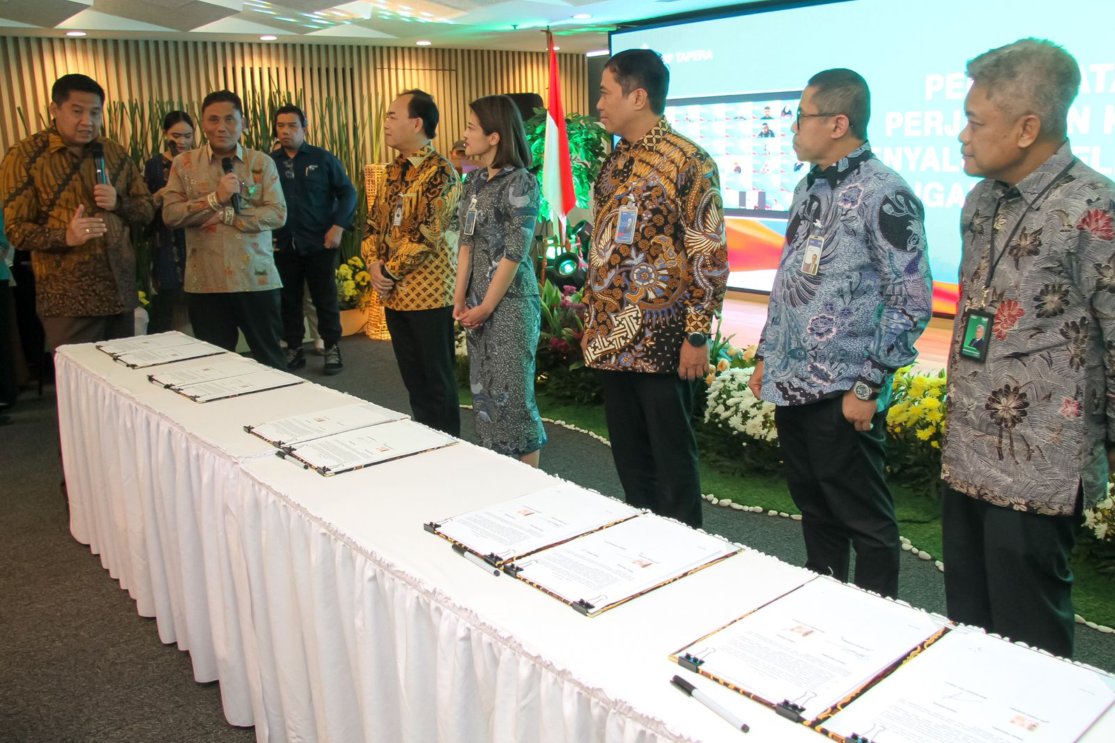 Direktur Consumer Banking PT Bank Tabungan Negara (Persero) Tbk, Hirwandi Gafar, berjabat tangan dengan Menteri Perumahan dan Kawasan Permukiman Maruarar Sirait pada acara Penandatanganan Perjanjian Kerja Sama Penyaluran KPR Sejahtera FLPP Tahun 2026 di Kantor BP Tapera, Jakarta, Selasa (23/12). Hingga 22 Desember 2025, BTN mencatatkan realisasi penyaluran KPR Sejahtera FLPP tertinggi secara nasional dengan 128.608 unit rumah subsidi atau setara 46,7% dari total nasional. Sementara itu, anak usaha BTN, Bank Syariah Nasional (BSN), turut berkontribusi dengan realisasi 59.463 unit saat masih berstatus Unit Usaha Syariah, sehingga total penyaluran BTN dan BSN mencapai 188.071 unit. Pencapaian tersebut menegaskan peran BTN Group sebagai motor utama pembiayaan perumahan bagi masyarakat berpenghasilan rendah.