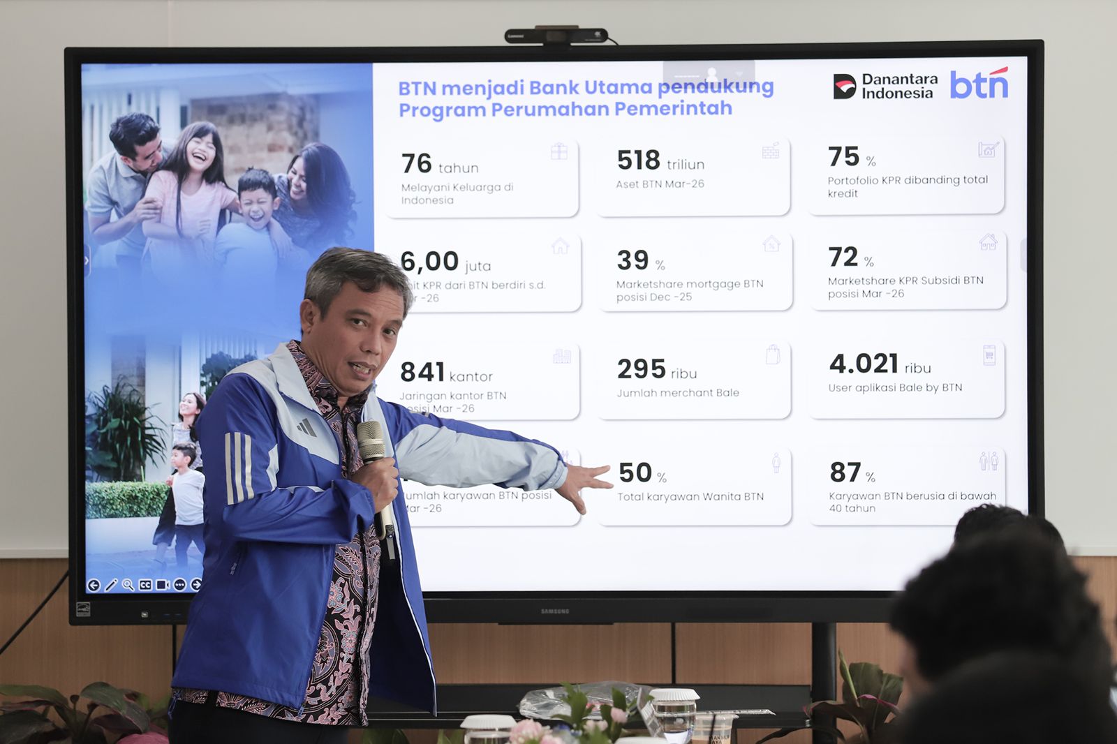 Direktur Utama PT Bank Tabungan Negara (Persero) Tbk (BTN) Nixon L.P. Napitupulu (tengah) bersama Direktur Consumer Banking BTN Hirwandi Gafar (kiri) menyampaikan perkembangan penyaluran lebih dari 6 juta unit KPR BTN sejak 1976 hingga April 2026 di Bandung, Kamis (9/4). Selama 50 tahun menyalurkan KPR, BTN telah berkontribusi untuk meningkatkan pertumbuhan ekonomi terutama melalui sektor perumahan. Seiring dengan transformasi bisnis, BTN kini tidak hanya berfokus pada pembiayaan KPR tetapi memperluas perannya dengan mengembangkan bisnis beyond mortgage yang memberikan kemudahan bagi debitur KPR BTN untuk memperoleh kredit lainnya seperti kredit untuk renovasi rumah, kendaraan bermotor ataupun biaya pendidikan anak.