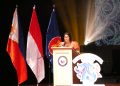 Duta Besar Filipina Gina Alagon Jamoralin Memberikan Sambutan dalam Acara 75 tahun persahabatan Indonesia dan Phippines di Jakarta, Minggu (11/11/2024).