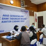 Suasana Kantor Cabang Bank BTN Solo saat malayani debitur yang mengikuti proses akad KPR serentak di Solo, Jawa Tengah, akhir pekan lalu. Kantor Cabang Bank BTN yang ada di wilayah Jateng & DIY melaksanakan kegiatan akad KPR serentak pada 16 Maret hingga 18 Maret 2022 sebanyak 174 unit. Dengan menggelar akad KPR serentak ini diharapkan akan semakin memudahkan masyarakat dalam memiliki rumah dan mendongkrak penyaluran KPR Bank BTN yang ditargetkan tumbuh 9-11% tahun ini.
