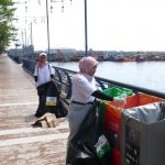 Sejumlah relawan dari Indonesia Asri melakukan edukasi pengelolaan sampah saat event Jakarta Martial Arts Extravaganza (JMAE) 2025, di Baywalk Mall Pluit, Jakarta, Minggu (04/05/2025).