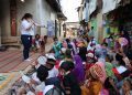 EVP PT Bank JTrust Indonesia Tbk Ong Pey Fang (dari kiri) memberikan kata sambutan pada acara perayaan Hari Anak Nasional (HAN) di Kampung Pemulung Bintara Jaya, Bekasi, Jawa Barat, Kamis (21/7/2022). Kegiatan ini merupakan bentuk kepedulian perusahaan terhadap anak-anak termasuk kunjungan J Trust Bank ke Jakarta Japan School Tangerang Selatan, Banten dalam rangka mewujudkan generasi emas Indonesia.