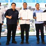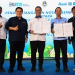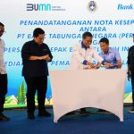 Menteri BUMN Erick Thohir dan Direktur Utama Bank BTN Nixon LP Napitupulu menyaksikan Direktur Consumer Bank BTN Hirwandi Gafar dan Sekjen PSSI Yunus Nusi melakukan Penandatanganan Nota Kesepahaman terkait kerjasama Penyediaan Jasa Layanan Perbankan di Sidoarjo, Sabtu (9/9). Kolaborasi antara Bank BTN dan PSSI akan memberikan kemudahan bagi para pelaku olahraga sepakbola untuk bisa memiliki rumah impian yang terjangkau dan layak huni. Pada kesempatan yang sama Bank BTN memberikan persetujuan KPR kepada Indra Sjafrie yang merupakan Direktur Teknik PSSI.