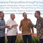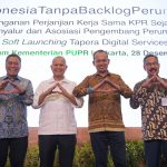 Direktur Consumer Bank BTN Hirwandi Gafar bersama Komisioner BP Tapera Adi Setianto melakukan penandatanganan perjanjian kerjasama KPR Sejahtera FLPP dengan Bank Penyalur dan Asosiasi Pengembang Perumahan Tahun 2024 dengan BP Tapera disaksikan Direktur Jenderal Pembiayaan Infrastruktur Pekerjaan Umum dan Perumahan Herry Trisaputra Zuna dan Direktur Jenderal Perumahan Iwan Suprijanto di Jakarta, Kamis (28/12/2023).