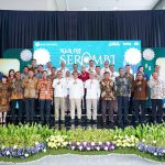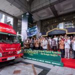 Direktur Teknologi dan Operasional, merangkap Pelaksana Tugas (Plt.) Direktur Utama Bank DKI, Amirul Wicaksono (baris pertama, memegang bendera), disaksikan Kepala Departemen Pengelolaan Uang Bank Indonesia, Marlison Hakim (baris pertama, paling kanan), Deputi Gubernur Bank Indonesia, Doni Primanto Joewono (baris pertama, kedua dari kanan), dan Direktur dari berbagai Bank di Indonesia, secara simbolis melepas Mobile Branch Bank DKI pada acara Kick Off SERAMBI pada Jumat (15/03).