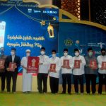 Dalam kesempatan tersebut, Direktur Ritel dan Syariah Bank DKI, Babay Parid Wazdi menyerahkan Mushaf Al-Qur’an kepada Asisten Kesejahteraan Rakyat DKI Jakarta, Uus Kuswanto sekaligus pemberian santunan kepada 1.000 anak yatim binaan, saat peluncuran Mushaf Alquran di Masjid Istiqlal, Jakarta, Jumat (22/4/2022).