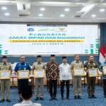 Jakarta – (FOTO) Direktur Teknologi dan Operasional merangkap Pelaksana Tugas (Plt.) Direktur Utama Bank DKI, Amirul Wicaksono (paling kanan) menerima penghargaan bagi Bank DKI sebagai Mitra Strategis 2023 dari Baznas (Bazis) Provinsi DKI Jakarta, yang diberikan langsung oleh Pj Gubernur DKI Jakarta, Heru Budi Hartono (tengah, berbatik) dan Ketua Baznas Bazis Provinsi DKI Jakarta, Akhmad H. Abubakar (tengah, berkemeja putih) di Balaikota Jakarta pada Selasa (26/03).