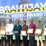 Kepala Divisi Syariah PT Bank Tabungan Negara (Persero) Tbk, Abdul Firman (kedua dari kanan), berjabatan tangan usai menerima penghargaan predikat tertinggi dari UB Halal Metric 2025 yang diserahkan langsung oleh Wakil Rektor I Universitas Brawijaya, Prof. Dr. Ir. Imam Santoso, MP (kedua dari kiri), disaksikan oleh Ketua UB Halal Metric, Ir. L. Tri Wijaya Nata Kusuma, ST., MT., Ph.D dalam ajang Brawijaya Halal Metric Award di Universitas Brawijaya, Malang, Senin (21/4). BTN Syariah meraih peringkat pertama dari 34 institusi industri dan memperoleh predikat Gold pada tiga indikator utama: Policy, Infrastructure, serta Halal Ecosystem & Perspective. Capaian ini menjadi bukti nyata peran BTN Syariah sebagai institusi keuangan yang tidak hanya menjalankan prinsip syariah secara internal, tetapi juga berkontribusi dalam memajukan sistem keuangan halal di Indonesia.