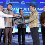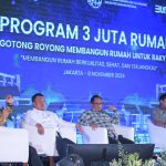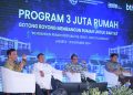 Direktur Utama PT Bank Tabungan Negara (Persero) Tbk, Nixon LP Napitupulu (kiri) Menteri Agraria Tata Ruang/Badan Pertanahan Nasional, Nusron Wahid (kedua dari kiri), Menteri Dalam Negeri, Tito Karnavian (tengah) dan Menteri Perumahan dan Kawasan Permukiman, Maruarar Sirait duduk bersama membahas beragam solusi pencapaian Program 3 Juta Rumah di Jakarta, Jumat (8/11).