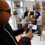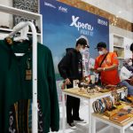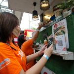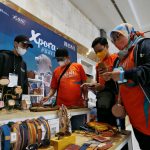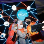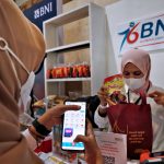 Pengunjung BNI Loud Fest tengah berbelanja menggunakan BNI Mobile Banking di Jakarta Convention Center, Minggu (17/7/2022).