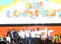 Menteri BUMN Erick Thohir bersama Direktur Utama BNI Royke Tumilaar beserta Jajaran Direksi serta Komisaris Utama BNI Pradjoto beserta Dewan Komisaris, menyapa para BNI Hi-Movers di BNI Loudfest Vol.3 2024 di Stadion Utama Gelora Bung Karno Jakarta, Sabtu, (6 Juli 2024).