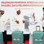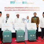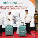 Direktur Sales & Distribution BSI Anton Sukarna melepas keberangkatan 120 orang guru- guru di pelosok, da’i dan relawan kemanusiaan yang berasal dari berbagai daerah di Indonesia. Jakarta, Kamis (1/12). Progam ini diadakan BSI bersama BSI Maslahat untuk memberikan apresiasi kepada para da’i, guru, relawan kemanusiaan karena ketiganya merupakan pahlawan yang selama ini berperan besar mencetak individu-individu yang bermartabat melalui pendidikan. Lewat program Apresiasi Umroh, BSI ingin mewujudkan salah satu cita-cita mereka untuk bisa ke Tanah Suci.