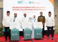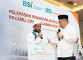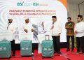 Direktur Sales & Distribution BSI Anton Sukarna melepas keberangkatan 120 orang guru- guru di pelosok, da’i dan relawan kemanusiaan yang berasal dari berbagai daerah di Indonesia. Jakarta, Kamis (1/12). Progam ini diadakan BSI bersama BSI Maslahat untuk memberikan apresiasi kepada para da’i, guru, relawan kemanusiaan karena ketiganya merupakan pahlawan yang selama ini berperan besar mencetak individu-individu yang bermartabat melalui pendidikan. Lewat program Apresiasi Umroh, BSI ingin mewujudkan salah satu cita-cita mereka untuk bisa ke Tanah Suci.