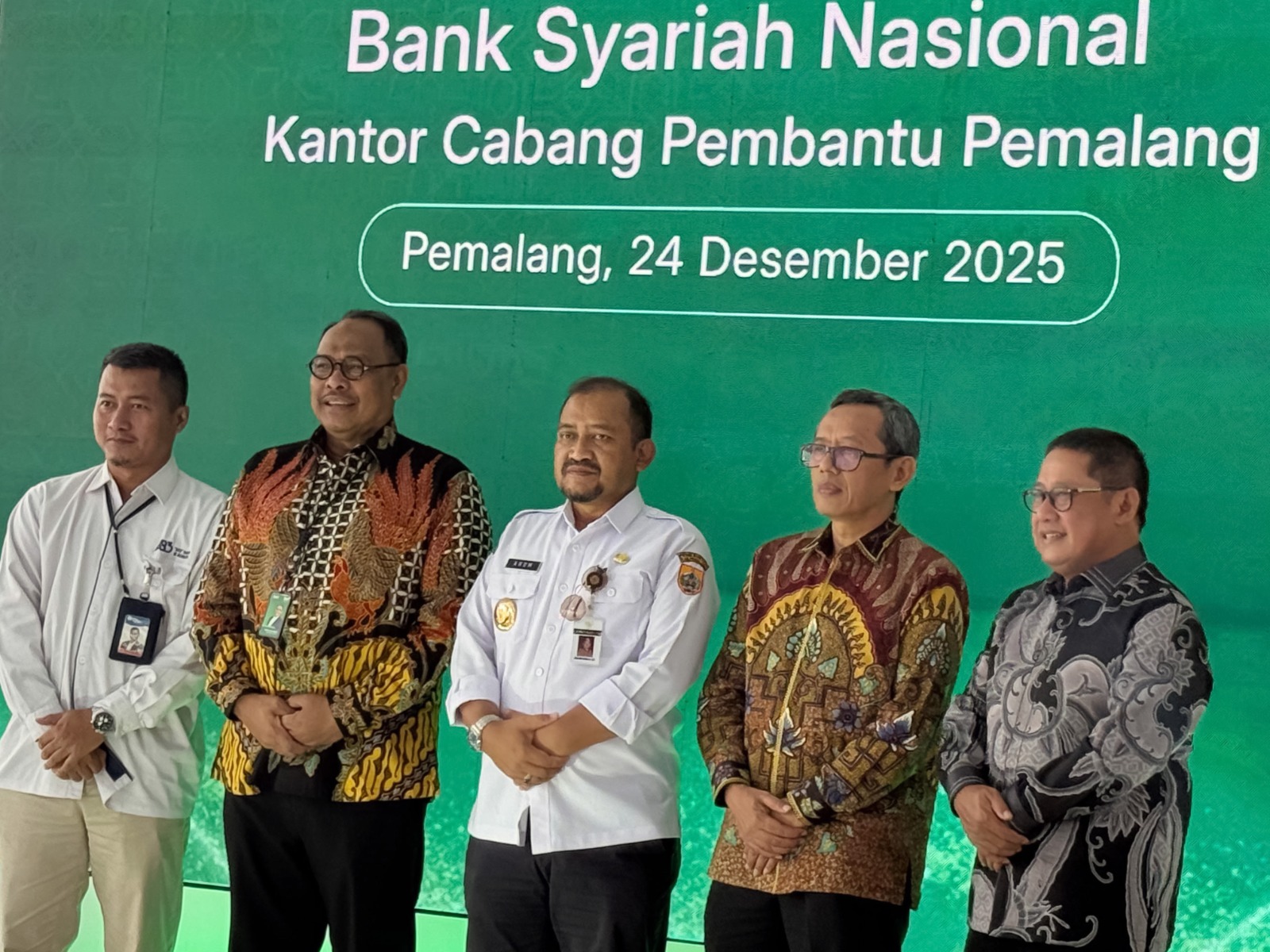 Direktur Utama Bank Syariah Nasional (BSN) Alex Sofjan Noor bersama Bupati Pemalang Anom Widiyantoro, Komisaris Utama BSN Bahrullah Akbar dan Komisaris BTN Lukman Khakim memotong pita tanda beroperasinya Kantor Layanan Cabang Pembantu Syariah Pemalang secara resmi yang dilakukan di halaman kantor tersebut di Pemalang, Rabu 24 Desember 2025. Peresmian Kantor Layanan tersebut dilakukan sehari setelah BSN mengumumkan secara resmi beroperasional di seluruh nusantara pada Senin (22/12) lalu. Kehadiran BSN di Pemalang untuk menjadi mitra pembangunan ekonomi daerah sekaligus untuk mendukung pemenuhan kebutuhan pembiayaan rumah di wilayah tersebut yang didukung oleh mitra pengembang daerah yang berjumlah lebih dari 20 pengembang. BSN saat ini didukung oleh 36 kantor cabang, 83 kantor cabang pembantu, hampir 600 kantor layanan syariah dan lebih dari 2.000 ATM sinergi dengan BTN sebagai induk usaha BSN.