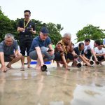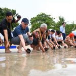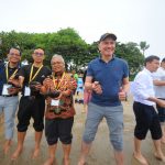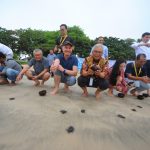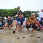 Direktur Distribution & Funding PT Bank Tabungan Negara (Persero) Tbk. Jasmin bersama Managing Director of World Savings and Retail Banking Institute (WSBI) Peter Simon memimpin pelepasan ratusan tukik di Pantai Jimbaran, Bali, Jumat (15/12). Pelepasan tukik menjadi kegiatan yang sejak 2021 dilakukan Bank BTN untuk ikut menjaga kelestarian alam, terutama habitat penyu di Bali. Langkah konservasi yang dilakukan Bank BTN sebagai bagian dari Tanggung Jawab Sosial dan Lingkungan tersebut, setidaknya telah mengembalikan hampir 10 ribu tukik ke habitat asalnya.
