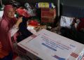 Branch Manager BTN Kantor Cabang Bekasi Shesharina Ayu Wulandini (kiri) menyerahkan bantuan Tanggung Jawab Sosial dan Lingkungan (TJSL) secara simbolis kepada korban banjir Bekasi di tenda pengungsian BNPB logistik di Jatirasa, Kota Bekasi, Jawa Barat, Kamis (6/3/2025). Bantuan yang diberikan BTN berupa kebutuhan orang dewasa dan anak-anak, makanan cepat saji, susu, air mineral, perlengkapan mandi, dapur, kasur, bantal dan selimut. Pemberian bantuan ini merupakan kepedulian BTN sebagai salah satu BUMN yang harus melaksanakan program TJSL guna mengurangi penderitaan masyarakat yang terdampak akibat bencana banjir tersebut.