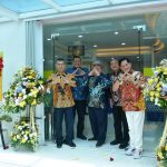 Kepala Divisi Service Quality & Distribution Division PT Bank Tabungan Negara (Persero) Tbk. Ferry Sipahutar (ketiga kiri) didampingi CEO Cahaya Buana Group Simarba Atong (kiri), Deputy Regional Manager Service & Collection Kantor Wilayah 1 Bank BTN Edward Melvin Purba, Branch Manager Bank BTN Kantor Cabang Bogor Adolf Ronaldo Sebastianus, dan Chairman Olympic Group Au Bintoro kompak tersenyum sambil melakukan pengguntingan pita pembukaan Kantor Cabang Pembantu (KCP) Kawasan Industri Sentul, Bogor, Selasa (5/12). Pembukaan KCP di kawasan industri tersebut merupakan langkah Bank BTN untuk menggarap potensi bisnis dari 150 perusahaan di Sentul. Adapun, per Oktober 2023 Bank BTN mencatatkan kredit sekitar Rp9,47 triliun di Bogor. Posisi tersebut naik sekitar 10% secara tahunan dari sekitar Rp8,61 triliun di Oktober 2022.