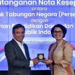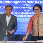 Direktur Utama PT Bank Tabungan Negara (Persero) Tbk (BTN) Nixon LP Napitupulu (kiri) dan Sekretaris Jenderal Kementerian Pendidikan Dasar dan Menengah (Kemendikdasmen) Suharti (kanan) menandatangani nota kesepahaman tentang Sinergi Tugas Bidang Literasi Keuangan dan Bidang Pendidikan Dasar dan Menengah. Dengan kerja sama ini, menguatkan peran BTN dalam meningkatkan indeks literasi keuangan Indonesia, khususnya bagi para pelajar dan guru. BTN juga mendukung peningkatan kesejahteraan guru/tenaga pendidik di lingkup Kemendikdasmen dengan membantu menyediakan fasilitas KPR dan pembiayaan ramah guru. Mengingat, terdapat 697.729 orang guru yang menempati rumah tidak layak huni. Serta, masih ada 212.025 orang guru yang belum memiliki rumah sendiri, baik kontrak rumah ataupun kos.