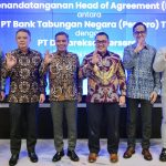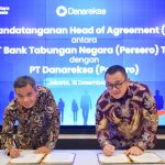 Direktur Utama PT Bank Tabungan Negara (Persero) Tbk, Nixon LP Napitupulu, dan Direktur Utama PT Danareksa (Persero), Yadi Jaya Ruchandi, menunjukkan dokumen Kesepakatan Pendahuluan (Head of Agreement/HoA) usai penandatanganan kerja sama strategis antara BTN dan Holding BUMN Danareksa di Menara 2 BTN, Jakarta, Kamis (18/12/m). Melalui kerja sama tersebut, BTN menyiapkan plafon fasilitas pembiayaan hingga Rp4,5 triliun yang terdiri dari Committed Corporate Line Facility dan Uncommitted Corporate Line Facility, serta menyediakan layanan perbankan terintegrasi untuk mendukung pengelolaan keuangan dan ekspansi bisnis seluruh ekosistem holding Danareksa. Kerja sama ini menjadi bagian dari upaya BTN untuk memperkuat perannya sebagai mitra perbankan utama bagi holding korporasi berskala besar, termasuk melalui pemanfaatan layanan cash management dan solusi perbankan digital melalui Bale Korpora.