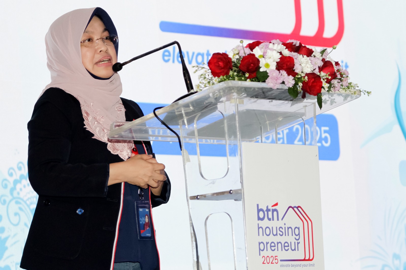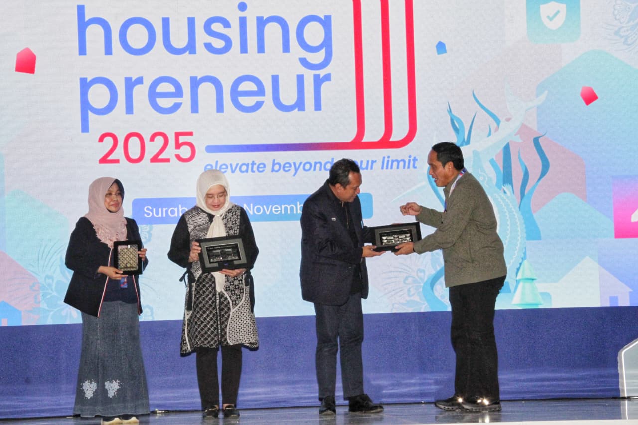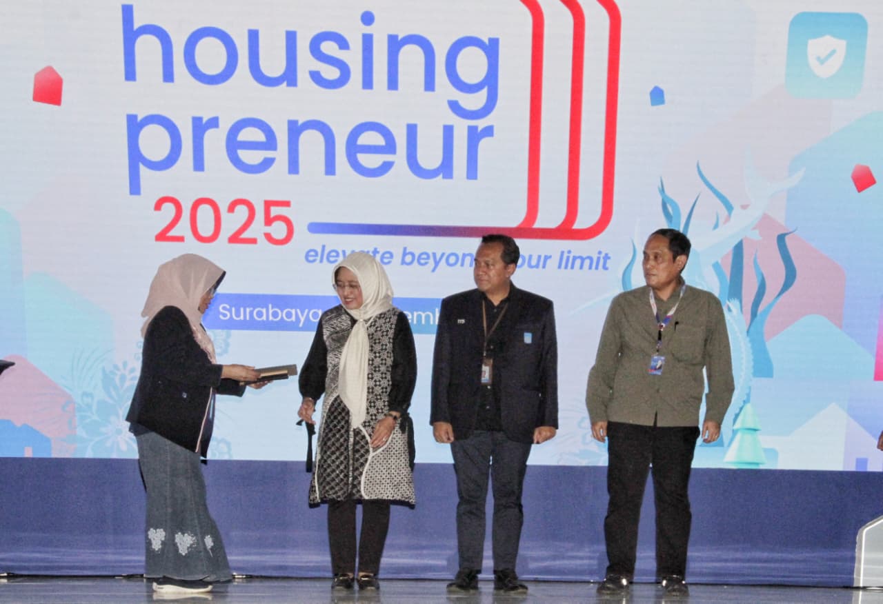 Human Capital Management Division Head PT Bank Tabungan Negara (Persero) Tbk Rahmayati (kanan), berbincang bersama Kepala Kantor Wilayah BTN Jatim, Bali, dan Nusra Carly Tambunan (kedua kiri), Kasubdit Pengembangan Kewirausahaan dan Karir Institut Teknologi Sepuluh Nopember (ITS) Hertiari Idajati (kiri), Wakil Rektor Bidang Riset, Inovasi, Kerjasama, dan Kealumnian ITS Agus Muhamad Hatta (ketiga kiri), dan Wakil Rektor Bidang Akademik dan Kemahasiswaan ITS Nurul Widiastuti (kedua kanan) di sela Roadshow BTN Housingpreneur 2025 di ITS, Surabaya, Jumat (14/11). Melalui Roadshow BTN Housingpreneur, BTN memberikan kesempatan bagi arsitek, pengusaha, mahasiswa, dan masyarakat Surabaya untuk melahirkan inovasi di sektor hunian. Adapun, BTN Housingpreneur 2025 merupakan ajang kompetisi tahunan di mana para pemenang dapat terhubung ke jejaring ekosistem perumahan yang mempertemukan ide, industri, dan peluang pasar properti di Indonesia.