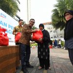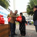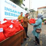 Direktur Utama Bank BTN Nixon LP Napitupulu didampingi Corporate Secretary Bank BTN Ramon Armando membagikan paket sembako kepada penyandang disabilitas, lansia, panti jompo dan masyarakat sekitar yang membutuhkan dalam kegiatan BTN dan Insan Pers Berbagi di Jakarta, Selasa (18/4). Dalam kegiatan tersebut, ada sekitar 600 paket sembako yang disebar ke wilayah Jakarta, Bogor, Depok, Tangerang dan Bekasi (Jabodetabek). Kegiatan ini merupakan bagian dari acara Ramadan Berfaedah yang dilakukan perseroan pada Bulan Ramadan 1444 H.