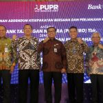 Direktur Distribution and Funding Bank BTN Jasmin bersama Kepala Biro Kepegawaian, Organisasi, dan Tata Laksana, Sekretariat Jenderal Kementerian Pekerjaan Umum dan Perumahan Rakyat (PUPR) Canka AS Putri disaksikan Direktur Utama Bank BTN Haru Koesmahargyo serta Sekretaris Jenderal Kementerian PUPR, Mohammad Zainal Fatah menandatangani Perjanjian Kerjasama (PKS) tentang Penyediaan Jasa Layanan Perbankan kepada Pegawai Kementerian PUPR di Jakarta, akhir pekan lalu. Bank BTN dipercaya oleh Kementerian PUPR untuk menyediakan fasilitas layanan perbankan di antaranya, fasilitas pengelolaan Rekening Satuan Kerja secara tunai dan non tunai, fasilitas Tabungan untuk penerimaan pembayaran Belanja Pegawai, meliputi Tabungan BTN Batara, Tabungan BTN Batara Payroll, Tabungan e’BATARAPOS dan fasilitas Kredit/Pembiayaan Konsumer.
