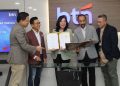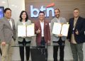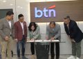 Direktur Risk Management PT Bank Tabungan Negara (Persero) Tbk, Setiyo Wibowo (kedu dari kiri) dan SEVP Digital Business, Thomas Wahyudi (kiri) serta Direktur Keuangan PT Mandiri Capital Indonesia (MCI), Wisnu Setiadi menyaksikan penandatanganan perjanjian kerjasama partisipasi yang dilakukan oleh Kepala Divisi Transformation & Partnership Management Division BTN, Erika dan Direktur Utama MCI, Ronald Simorangkir di Jakarta, Rabu (8/1). BTN dan MCI h resmi berkolaborasi melalui kemitraan strategis Dana Ventura BTN Fund. Inisiatif ini dirancang untuk menjadi mendorong pertumbuhan bisnis utama BTN melalui investasi pada perusahaan rintisan yang dapat memberikan solusi berbasis teknologi. Sektor bisnis yang menjadi sasaran antara lain sektor perumahan, konstruksi, layanan keuangan dan perbankan, Software, dan Environmental, Social, and Governance (ESG).