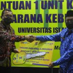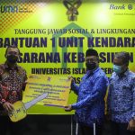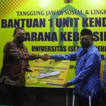 Direktur Utama Bank BTN Haru Koesmahargyo bersama Rektor UIN Sultan Maulana Hasanuddin Banten Wawan Wahyudin menaiki mobil sarana kebersihan usai melakukan serah terima bantuan tanggung jawab sosial dan lingkungan (TJSL) berupa kendaraan sarana kebersihan di Kampus UIN Sultan Maulana Hasanuddin, Serang, Banten, Kamis (17/3). Pemberian bantuan TJSL ini merupakan salah satu bentuk tanggung jawab sosial kepada UIN Sultan Maulana Hasanuddin Banten yang telah menjalin sinergi layanan perbankan dengan perseroan.