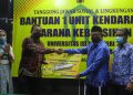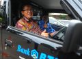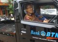 Direktur Utama Bank BTN Haru Koesmahargyo bersama Rektor UIN Sultan Maulana Hasanuddin Banten Wawan Wahyudin menaiki mobil sarana kebersihan usai melakukan serah terima bantuan tanggung jawab sosial dan lingkungan (TJSL) berupa kendaraan sarana kebersihan di Kampus UIN Sultan Maulana Hasanuddin, Serang, Banten, Kamis (17/3). Pemberian bantuan TJSL ini merupakan salah satu bentuk tanggung jawab sosial kepada UIN Sultan Maulana Hasanuddin Banten yang telah menjalin sinergi layanan perbankan dengan perseroan.