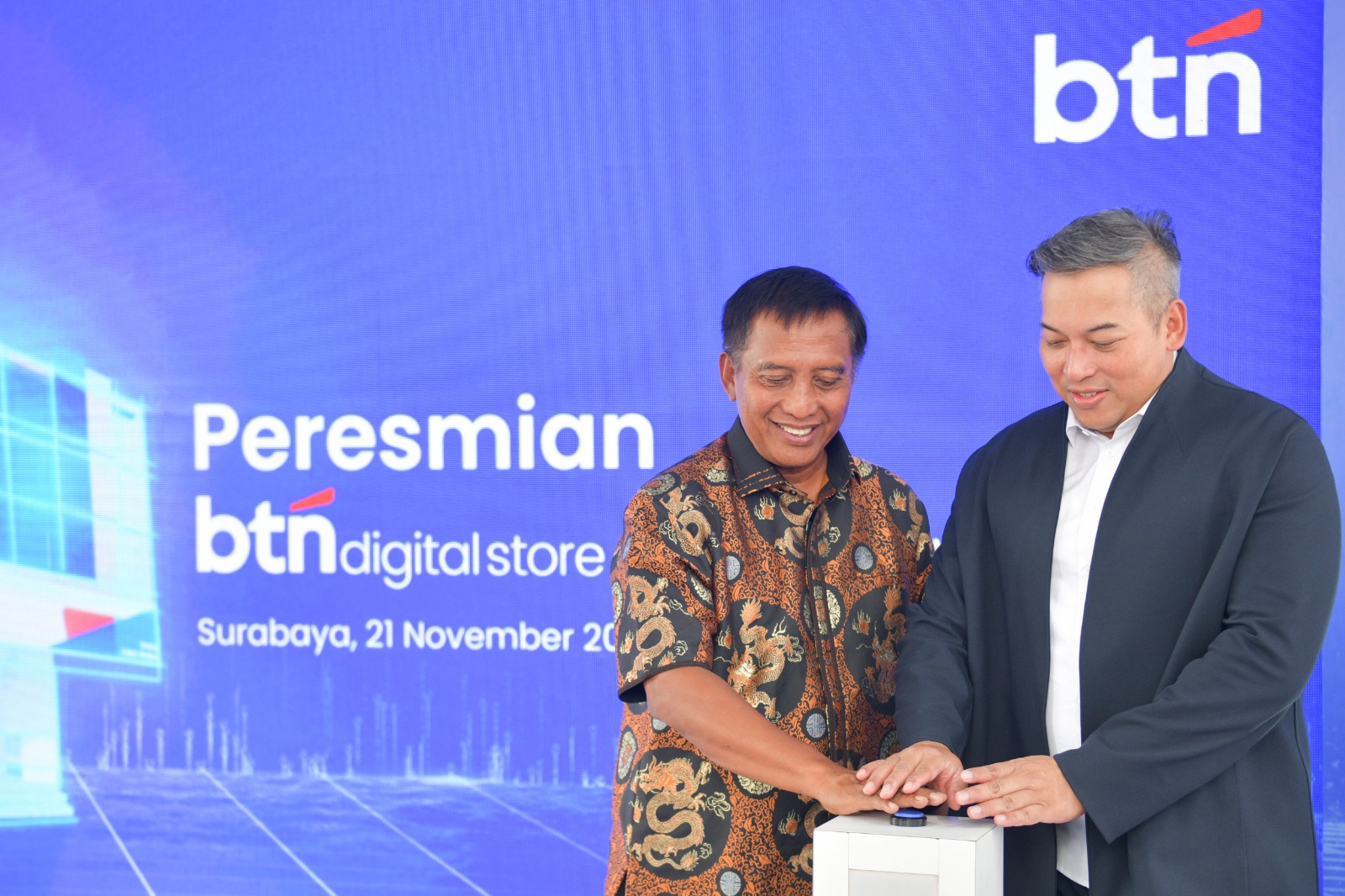 Direktur Network & Retail Funding BTN Rully Setiawan (kanan) bersama Rektor Universitas Negeri Surabaya Nurhasan saat meresmikan BTN Digital Store KCP Digital Univeraitas Negeri Surabaya (Unesa) Lidah Wetan Surabaya, Jumat (21/11/2025). Sebagai bagian dari ekspansi layanan digital BTN di Surabaya, Unesa dipilih sebagai lokasi peluncuran karena telah menjadi mitra strategis BTN sejak 2006. Seluruh pembayaran kampus terintegrasi dengan BTN, mulai dari transaksi pendidikan sekitar 70.000 mahasiswa hingga payroll lebih dari 2.300 dosen dan karyawan.