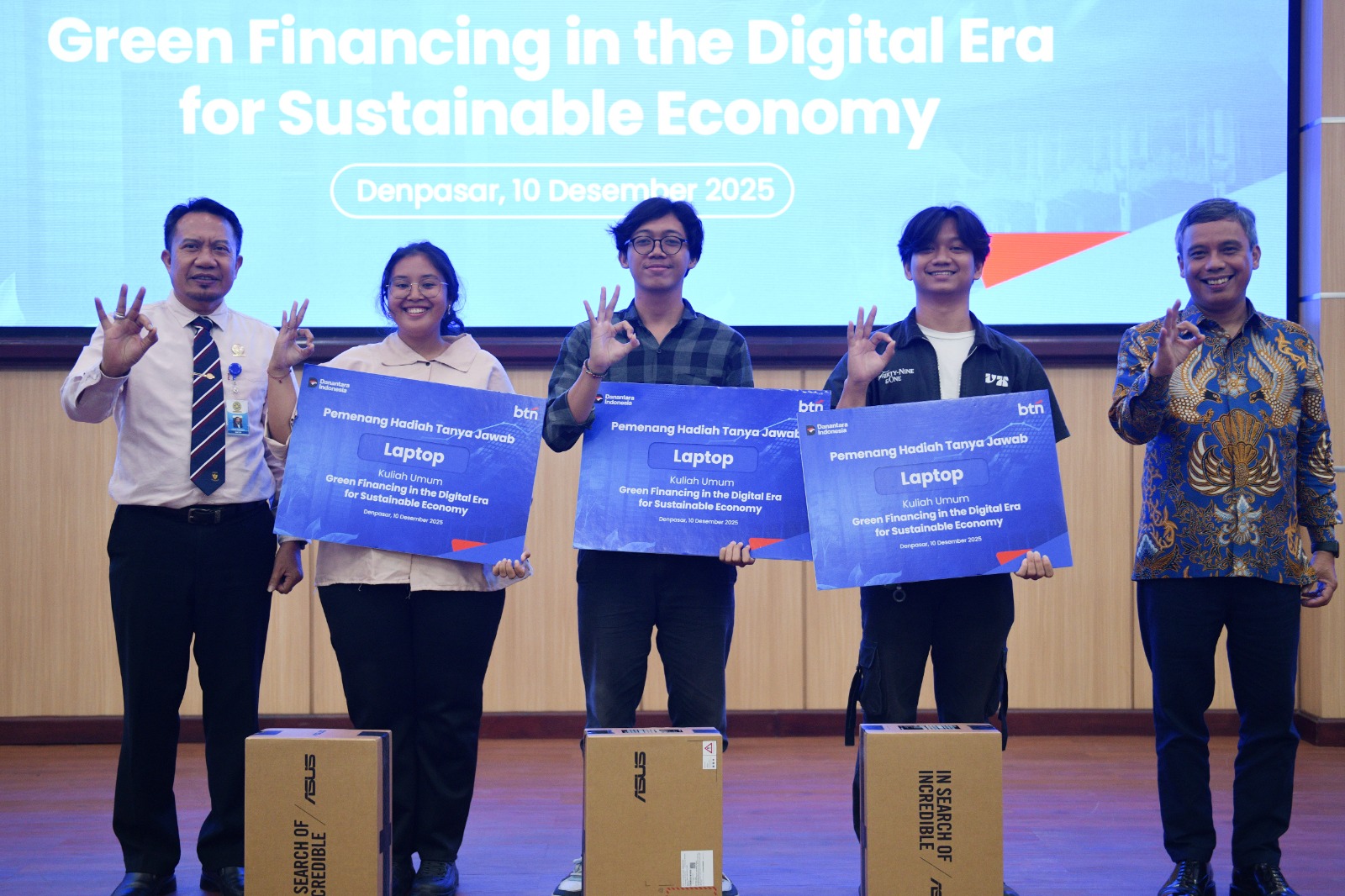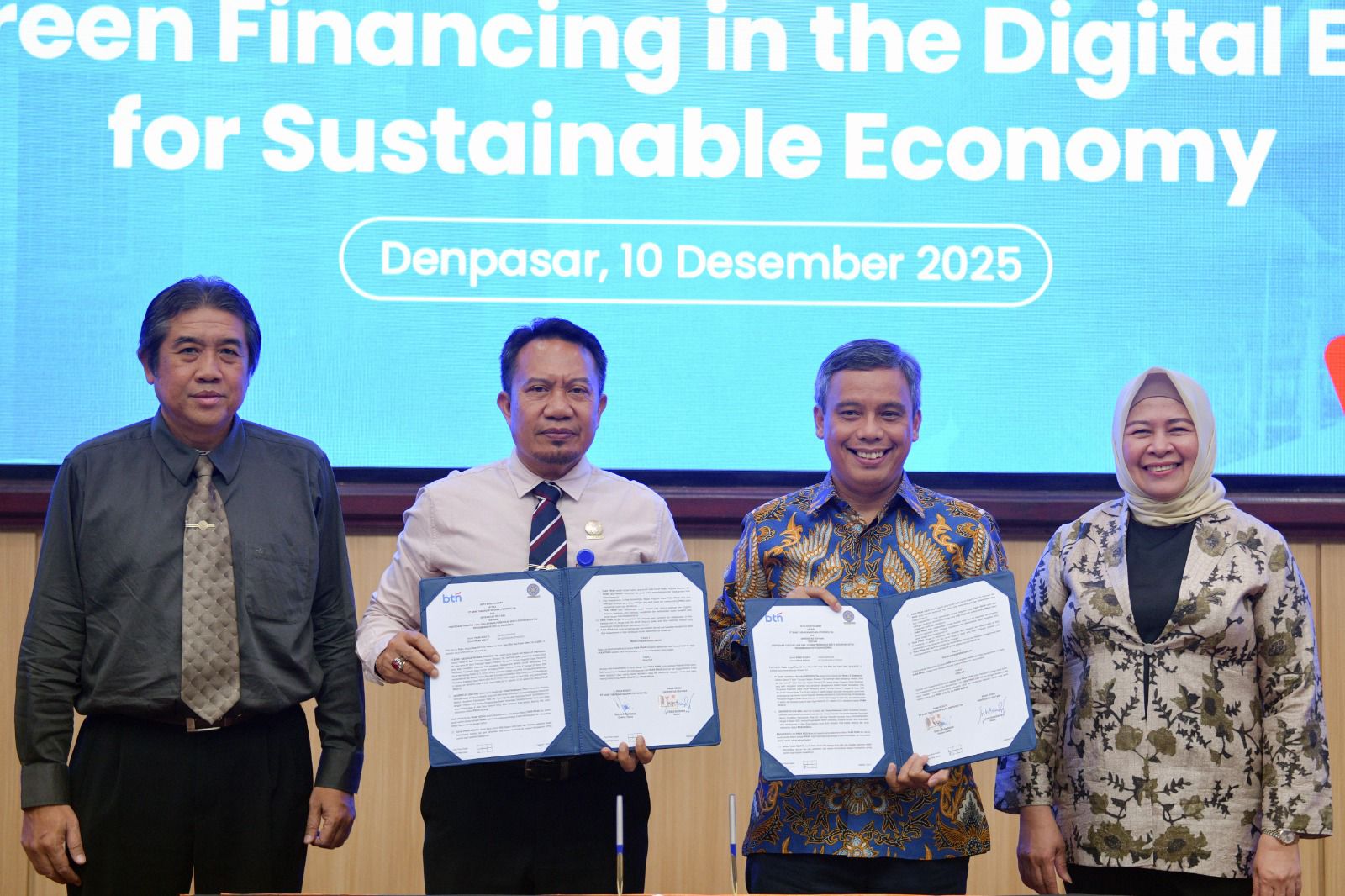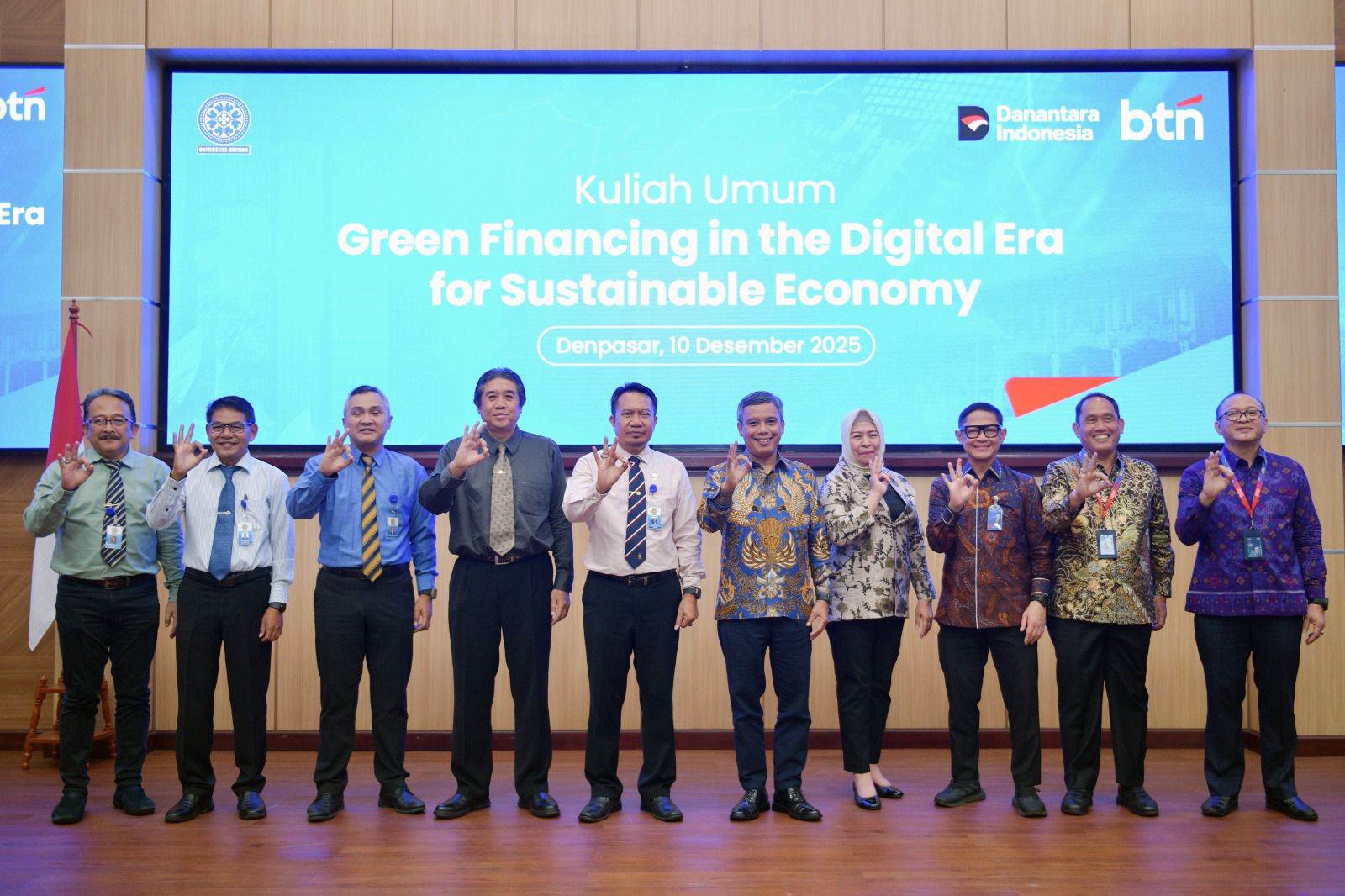 Direktur Utama BTN Nixon LP Napitupulu menyampaikan kuliah umum mengenai urgensi pembiayaan hijau di era digital kepada ratusan mahasiswa Universitas Udayana di Denpasar, Rabu (10/12). Dalam kesempatan tersebut, Rektor Unud Prof. Ir. I Ketut Sudarsana, S.T., Ph.D. turut hadir dan menyaksikan penandatanganan Nota Kesepahaman antara BTN dan Universitas Udayana terkait penyediaan fasilitas jasa dan layanan perbankan serta dukungan pengembangan sivitas akademika. Melalui kolaborasi ini, BTN berharap dapat memperkuat peran generasi muda dalam mendorong ekonomi hijau di Indonesia.