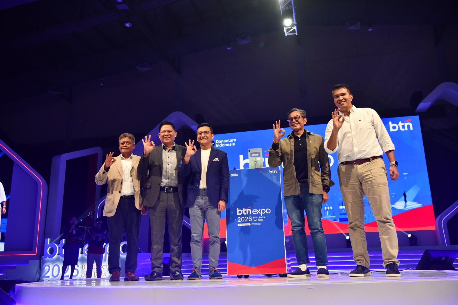 Direktur Risk Management BTN Setiyo Wibowo (tengah) didampingi SEVP Digital Business BTN Thomas Wahyudi (kiri) dan Corporate Secretary BTN Ramon Armando (kanan) membuka BTN Expo 2026 di Hall B Jakarta International Convention Center (JICC), Rabu (28/1). BTN memperkuat peran sebagai bank modern berbasis ekosistem terintegrasi. Melalui tema “Build, Battle, and Beat”, BTN mengusung semangat membangun fondasi yang kuat, berinovasi menghadapi dinamika industri, serta memenangkan tantangan di sektor perumahan, bisnis, dan gaya hidup.