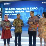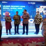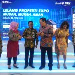 Direktur Utama PT Bank Tabungan Negara (Persero) Tbk Haru Koesmahargyo (ketiga dari kanan) bersama Direktur Lelang Ditjen Kekayaan Negara (DJKN) Kementerian Keuangan Joko Prihanto (ketiga dari kiri) membuka acara Lelang Properti Expo 2022 disaksikan oleh Direktur Transformasi dan Sistem Informasi DJKN, Lukman Effendi (kiri), Kepala Kanwil DJKN Banten l, Nuning Sri Rejeki Wulandari (kedua dari kiri) dan Direktur Assets Management BTN, Elisabeth Novie Riswanti (kedua dari kanan), dan Direktur Human Capital, Compliance & Legal BTN , Eko Waluyo (kanan) di Jakarta, Kamis (23/6). Bank BTN kembali menggelar Lelang Properti Expo di berbagai wilayah di Indonesia untuk mempercepat pemulihan aset korporasi. Pada lelang tersebut, Bank BTN menawarkan 632 unit properti dan proyek properti dengan sekitar Rp 1,2 triliun.