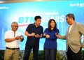 Wakil Direktur Utama PT Bank Tabungan Negara (Persero) Tbk., Nixon LP Napitupulu (kanan), Mantan Atlet Bulu Tangkis Nasional Alan Budi Kusuma (kedua dari kiri), Susi Susanti (kedua dari kanan) dan Direktur Distribution & Funding Bank BTN, Jasmin (kiri) kompak menunjukan Kartu Tabungan BTN Bisnis pada acara Media Briefing Tabungan BTN Bisnis di Jakarta, Kamis (7/7).