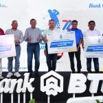 Direktur Utama Bank BTN Haru Koesmahargyo (kedua kanan) bersama Dirjen Pembiayaan Infrastruktur Pekerjaan Umum dan Perumahan Kementerian PUPR sekaligus Komisaris Bank BTN Herry Trisaputra Zuna, (kiri) Anggota Komisi XI DPR RI Ahmad Hafisz Tohir (kedua kiri) dan Wakil Ketua Dewan Komisioner OJK Terpilih Mirza Adityaswara melakukan Tea Off pada acara BTN Golf Tournament 2022 di Jakarta, Minggu (22/05). BTN Tournament Golf 2022 merupakan rangkaian acara HUT ke 72 Tahun Bank BTN dengan mengundang stakeholder dan mitra perseroan untuk mempererat sinergi serta kolaborasi dalam menyukseskan program sejuta rumah. Pada acara tersebut Bank BTN memberikan bantuan Tanggung Jawab Sosial dan Lingkungan (TJSL) kepada para pengembang berupa 7.200 bibit pohon yang dibagi pro rata kepada REI, Apersi dan Himpera masing-masing 2.400 bibit pohon untuk mendukung program perumahan ramah lingkungan yang menjadi fokus BTN.