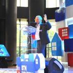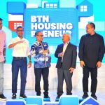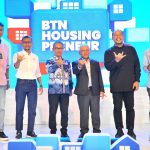 Direktur Distribution & Institutional Funding BTN Jasmin bersama Sekretaris Univeritas Gadjah Mada (UGM) Andi Sandi Antonius (tiga kiri), Ketua DPD REI Daerah Istimewa Yogyakarta (DIY) Ilham M Nur (dua kiri) dan Corporate Secretary BTN Ramon Armando meresmikan kick off BTN Housingpreneur dalam acara Roadshow BTN Housingpreneur di Gelanggang Inovasi dan Kreativitas (GIK) UGM, Yogyakarta, Selasa (26/11). Ajang kompetisi BTN Housingpreneur digelar untuk mendorong inovasi di sektor perumahan dengan mengedepankan keberlanjutan lingkungan. Adapun total hadiah yang diperebutkan dalam ajang yang bertujuan melahirkan pengusaha di sektor perumahan tersebut sebesar Rp1 miliar.