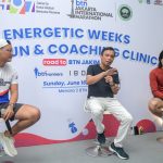 Direktur Utama BTN Nixon LP Napitupulu bersama dr Tirta memberikan sharing kepada para komunitas lari saat acara Energetic Weeks Fun Run & Coaching Clinic dalam rangka Road to BTN Jakarta International Marathon (JAKIM) 2024 di Menara 2 BTN, Jakarta, Minggu (16/6). BTN JAKIM 2024 akan digelar pada Minggu 23 Juni 2024 dengan menerapkan konsep secure, safety dan sterile. Dengan konsep tersebut Pemda Jakarta akan melakukan penutupan 36 Ruas jalan di Jakarta Pusat dan Jakarta Selatan serta beberapa Koridor Trans Jakarta akan dialihkan dan non aktif sementara.