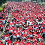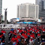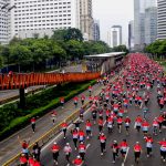 Sebanyak 31.000 ribu pelari memenuhi kawasan Jalan Sudirman-Thamrin untuk mengikuti ajang BTN Jakarta International Marathon (JAKIM) 2025 yang mengambil start di kawasan Silang Monas dan Finish di Stadion Utama Gelora Bung Karno (GBK), Jakarta, pada Minggu, 29/6/2025). Ajang BTN JAKIM 2025 membuat kawasan Jalan Sudirman-Thamrin dipenuhi lautan manusia. Dalam kesempatan tersebut Direktur Utama BTN Nixon LP Napitupulu ikut berlari di tengah kerumunan peserta yang turun diikuti oleh 52 negara. Turut hadir pada acara tersebut para menteri seperti Menteri Kesehatan Budi Gunadi Sadikin, Menteri Koordinator Pangan Zulkifli Hasan, Wakil Menteri Dalam Negeri Bima Arya dan sejumlah anggota DPR RI.