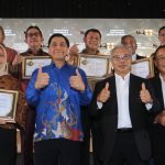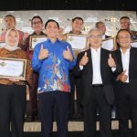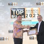 Corporate Secretary PT Bank Tabungan Negara (Persero) Tbk. Achmad Chaerul (kiri) tersenyum sambil menerima penghargaan dalam ajang TOP BUMN Awards 2022 di Jakarta, Selasa (13/12). Apresiasi TOP BUMN tersebut disematkan kepada Bank BTN atas keberhasilan perseroan mempertahankan kinerja positif meski berada dalam situasi ekonomi yang kurang bersahabat akibat pandemi covid-19. Bank BTN juga dinilai sebagai perusahaan pelat merah yang berinovasi sehingga pulih lebih cepat dan mampu bangkit lebih kuat di tengah pandemi.