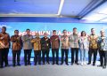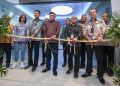 Direktur Utama BTN Nixon LP Napitupulu didampingi jajaran direksi BTN bersama Dir Pengawasan Perilaku Usaha Jasa Keuangan, Edukasi, Perlindungan Konsumer OJK Jawa Barat Yuzirwan, Deputy Direktur BI Jawa Barat Yon Widiyono dan Kabag Tata Usaha Biro Perekonomian Pemprov Jawa Barat Arie Kurnia menggunting pita dalam peresmian Gedung Baru Kantor Wilayah BTN Jawa Barat di Bandung, Jumat (28/2). Relokasi Kantor Wilayah BTN Jawa Barat dari Bekasi ke Bandung merupakan langkah perseroan memperluas ekspansi bisnis di Jawa Barat. Dengan relokasi tersebut diharapkan BTN dan meningkatkan transaksi perbankan dan penyaluran kredit perumahan di wilayah Jawa Barat.