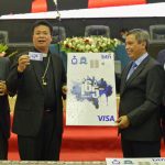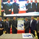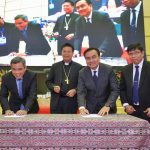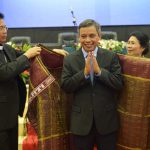 Direktur Utama BTN Nixon LP Napitupulu bersama Ompui Ephorus HKBP, Pdt. Victor Tinambunan, memperlihatkan mockup Kartu ATM Tabungan BTN-HKBP disaksikan Ketua Yayasan Universitas HKBP Nommensen Effendi Muara Sakti