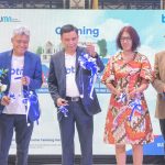 Kepala Kanwil I BTN Benjamin Sihombing melakukan prosesi pemotongan pita dalam peresmian Sales Center KPR BTN di Bandung, Selasa (21/5). BTN secara serentak meresmikan penamabahan Sales Center KPR BTN di tiga kota besar yakni Bandung, Medan dan Makassar. Pembukaan tiga Sales Center KPR BTN tersebut diharapkan mampu meningkatkan realisasi pembiayaan KPR Non Subsidi yang tahun ini realisasinya ditargetkan sekitar Rp2,5 triliun.