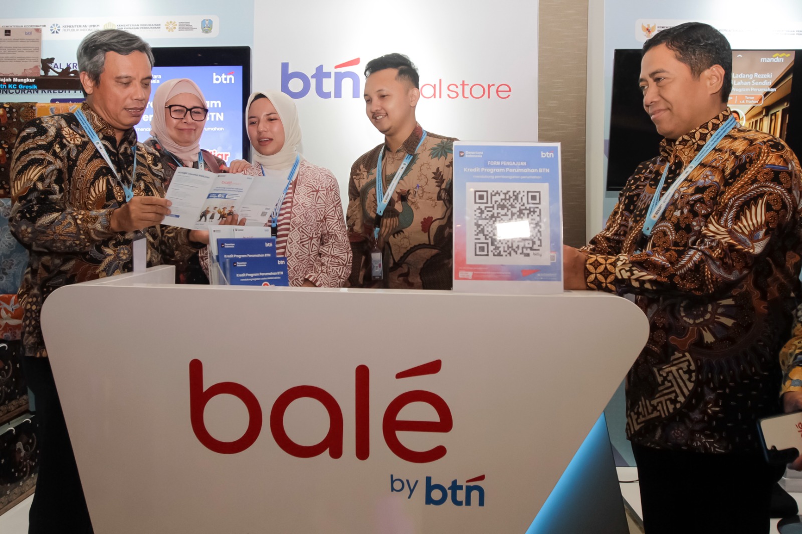 Direktur Utama BTN Nixon LP Napitupulu didampingi Direktur Consumer Banking BTN Hirwandi Gafar (kanan) dan Direktur Commercial Banking Hermita (kiri) menyerahkan penyaluran Kredit Program Perumahan (KPP) kepada Pengembang usai Akad Massal Kredit Usaha Rakyat KUR 800.000 Debitur Penciptaan Lapangan Kerja dan Peluncuran Kredit Program Perumahan di Surabaya, Selasa (21/10). BTN menargetkan menjadi penyalur terbesar KPP dengan memanfaatkan basis lebih dari 12 ribu pelaku usaha sektor perumahan, terdiri atas developer, kontraktor, dan toko bangunan. Adapun, program KPP memiliki bunga hanya 6% dengan penjaminan dan proses pengajuan yang mudah, sehingga diharapkan mampu mempercepat realisasi Program 3 Juta Rumah. BTN juga menargetkan penyaluran tahap awal sekitar Rp2 triliun hingga akhir tahun 2025 dan akan mempercepat ekspansi pada tahun depan untuk meningkatkan permodalan developer serta mempercepat pembangunan rumah rakyat.
