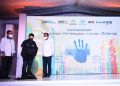 Menteri BUMN Erick Thohir (tengah) disaksikan Direktur Utama PT Bank Tabungan Negara (Persero) Tbk Haru Koesmahargyo (kiri) dan Direktur Utama Perum Perumnas Budi Saddewa Soediro (kanan) memindai tangan saat acara “Pencanangan Penyediaan Pembiayaan & Hunian Milenial” di Depok, Jawa Barat, Sabtu (2/4).