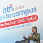Direktur Consumer PT Bank Tabungan Negara (Persero) Tbk, Hirwandi Gafar berjabatan tangan dengan Rektor Universitas Islam Indonesia Fathul Wahid usai menandatangani Nota Kesepahaman perihal Penyediaan Penggunaan Jasa dan Layanan Perbankan serta Dukungan untuk Pengembangan Civitas Akademika saat gelaran BTN Syariah Goes to Campus, di Yogyakarta, Jumat (20/12). Jelang Spin Off, Unit Usaha Syariah BTN makin aktif menjalin kerja sama dengan instansi pendidikan dalam rangka pengembangan bisnis syariah ke depan, termasuk pengelolaan keuangan, pengembangan kualitas civitas akademika, pembinaan UMKM dan lain sebagainya.