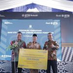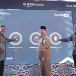 Direktur Consumer PT Bank Tabungan Negara (Persero) Tbk, Hirwandi Gafar (kedua dari kiri) menyerahkan potongan tumpeng pertama kepada Wakil Gubernur Kalimantan Barat, Ria Norsan (kedua dari kanan) disaksikan oleh Rektor Universitas Tanjung Pura, Garuda Wiko (kiri) dan Ketua MUI Provinsi Kalimantan Barat, M. Basri saat perayaan Hari Ulang Tahun Unit ke -18 Usaha Syariah BTN (BTN Syariah), di Pontianak, Selasa (14/2). BTN Syariah dalam usianya ke 18 tahun makin kokoh menjadi pendukung utama bisnis Bank BTN, khususnya di segmen pembiayaan perumahan dengan berkontribusi menyalurkan pembiayaan untuk lebih dari 318 ribu rumah bagi masyarakat Indonesia dan melayani lebih dari 1 juta nasabah.