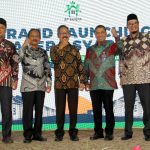 Direktur Consumer PT Bank Tabungan Negara (Persero) Tbk Hirwandi Gafar mengepalkan tangan bersama Asistant 2 Bidang Pembangunan Provinsi Aceh Ir. Mawardi (kanan), Dewan Penasehat Syariah BP Tapera KH. Solahudin Ayub (kedua dari kiri) dan Komisioner BP Tapera, Adi Setianto (tengah) serta Dewan Penasehat Syariah Bank BTN Mohamad Bagus Teguh (kanan) saat acara peluncuran Tapera Syariah di Banda Aceh, Selasa (23/8). Unit Usaha Syariah BTN atau BTN Syariah menjadi bank pertama yang menyalurkan Tapera Syariah, produk baru pembiayaan perumahan dari BP Tapera yang menggunakan skema syariah bagi para peserta Tapera. BTN Syariah telah mencatatkan penyaluran Tapera Syariah sebanyak 289 unit atau senilai Rp 427 miliar per Juli 2022.