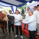 Direktur Utama BTN Nixon LP Napitupulu bersama Wadirut BTN Oni Febriarto Raharadjo, Direktur Consumer BTN Hirwandi Gafar dan Direktur Human Capital, Compliance & Legal BTN Eko Waluyo menyerahkan secara simbolis hewan kurban kepada Ketua Seksi Kerohanian Islam (SKI) BTN Fathoni Hudori usai pelaksanaan Sholat Idul Adha di Menara BTN Jakarta, Senin (17/6). Tema yang diambil BTN dalam perayaan Idul Adha tahun ini adalah ”BTN Berkurban, Berakhlak dan Peduli, BTN menebarkan hewan kurban sebanyak 460 ekor yang terdiri dari 270 ekor Sapi dan 190 ekor kambing ke seluruh Indonesia.