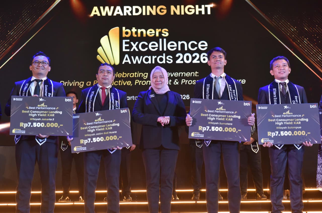 Direktur Utama PT Bank Tabungan Negara (Persero) Tbk (BTN) Nixon LP Napitupulu (tengah) bersama para pemenang BTNers Excellence Award (BXA) dalam malam puncak penghargaan BXA 2026 di The Grand Platinum Hotel Jakarta, Kamis (12/2). BXA 2026 merupakan bentuk apresiasi perusahaan kepada BTNers yang telah bekerja sungguh-sungguh, memberikan hasil terbaik, dan membawa perubahan positif bagi BTN. Penghargaan ini menegaskan bahwa setiap kerja keras, ide baru, dan semangat melayani memiliki arti penting bagi perjalanan BTN ke depan. Di tengah perubahan yang semakin cepat, BTN membutuhkan insan yang terus belajar dan beradaptasi, bekerja dengan semangat dan hasil nyata, serta berani bergerak cepat dan tepat. BTN berkomitmen melangkah menjadi mitra utama keluarga Indonesia melalui layanan yang semakin mudah, modern, dan bermanfaat. BTNers Excellence Award terdiri dari lima kategori, yaitu Best Employee, Best Performance, Best Change Agent, Best Service, dan BTN Star.