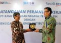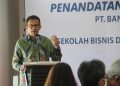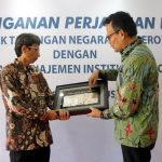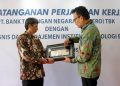 Direktur Finance Bank BTN Nofry Rony Poetra bersama Wakil Rektor Bidang Akademik dan Kemahasiswaan Institut Teknologi Bandung (ITB) yang juga PLT Dekan Sekolah Bisnis dan Manajemen (SBM) ITB Jaka Sembiring menandatangani Perjanjian Kerjasama antara Bank BTN dan SBM-ITB didampingi Head of Investor Relation and Research Division BTN Winang Budoyo dan Ketua Kelompok Keahlian Risiko Bisnis dan Keuangan SBM-ITB Sudarso Kaderi Wiryono di Bandung, Jumat (26/8). Bank BTN kembali menjalin kerjasama dengan SBM-ITB meliputi Program Pelatihan dan Pendidikan di bidang properti yakni pelatihan Mini MBA in Property sehingga dapat bersama-sama memberikan kontribusi dalam mencetak calon developer baru di bidang pengembang perumahan.